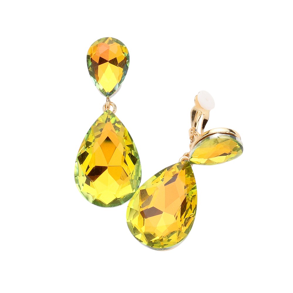 Glass Crystal Double Teardrop Clip on Evening Earrings