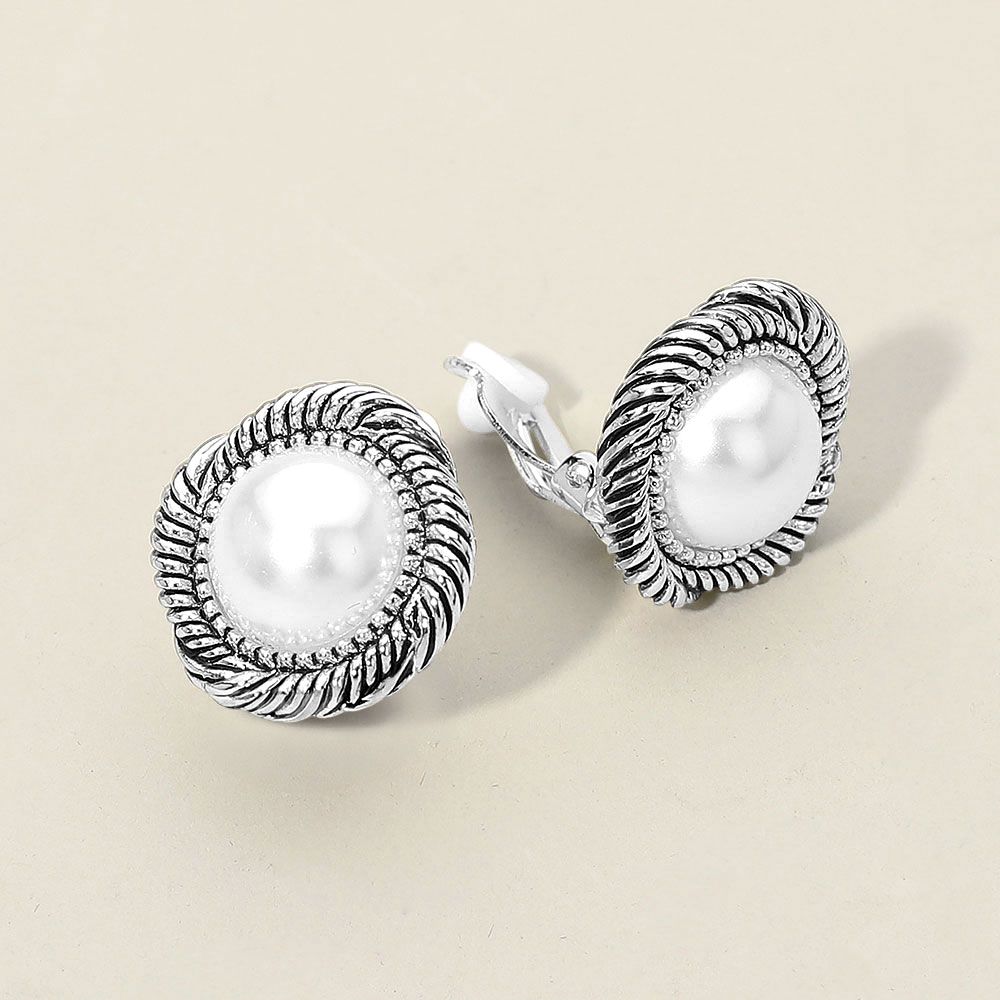 • Timeless clip-on stud earrings featuring a round center framed by a textured border for a refined, vintage-inspired look. Designed for easy, comfortable wear without piercings, they pair effortlessly with everyday outfits or polished occasion styles.