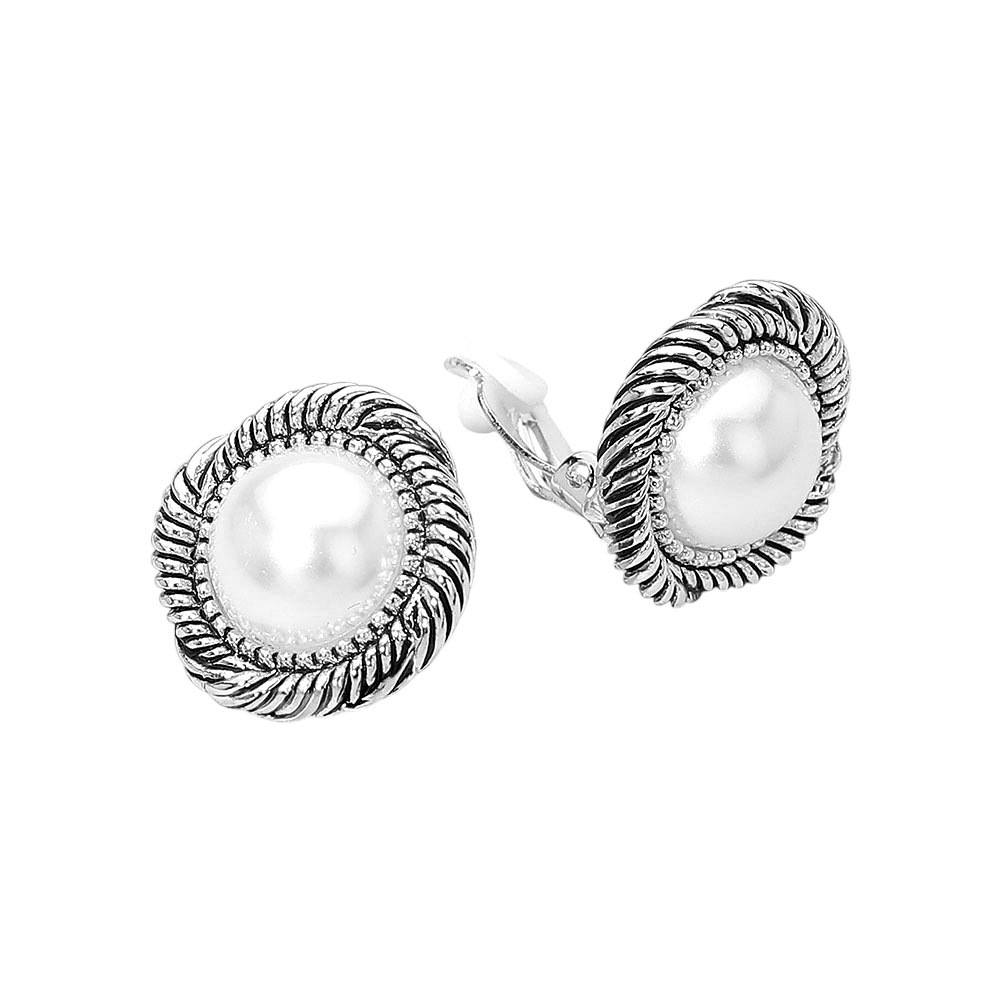 Metal Trim Pearl Clip On Earrings Metal Trim Pearl Clip On Earrings