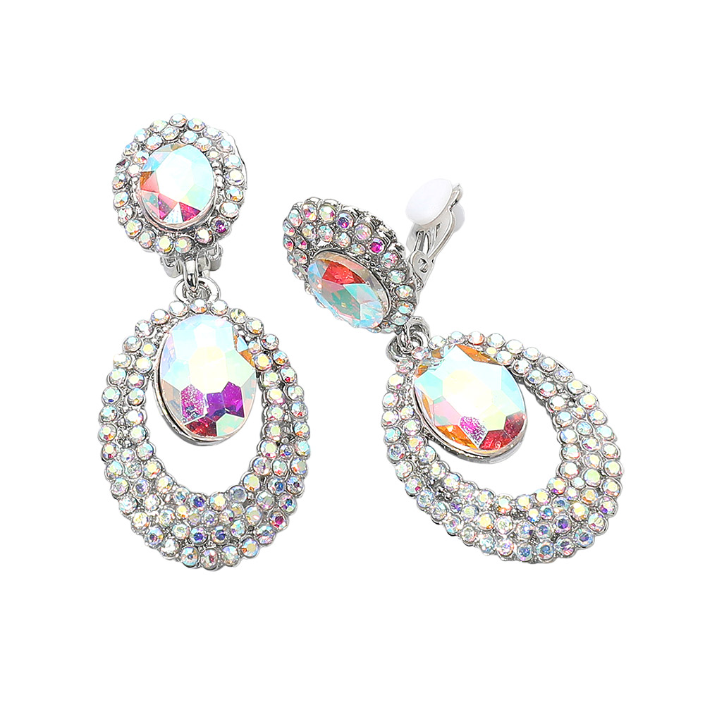 Oval Halo Drop Evening Clip On Earrings