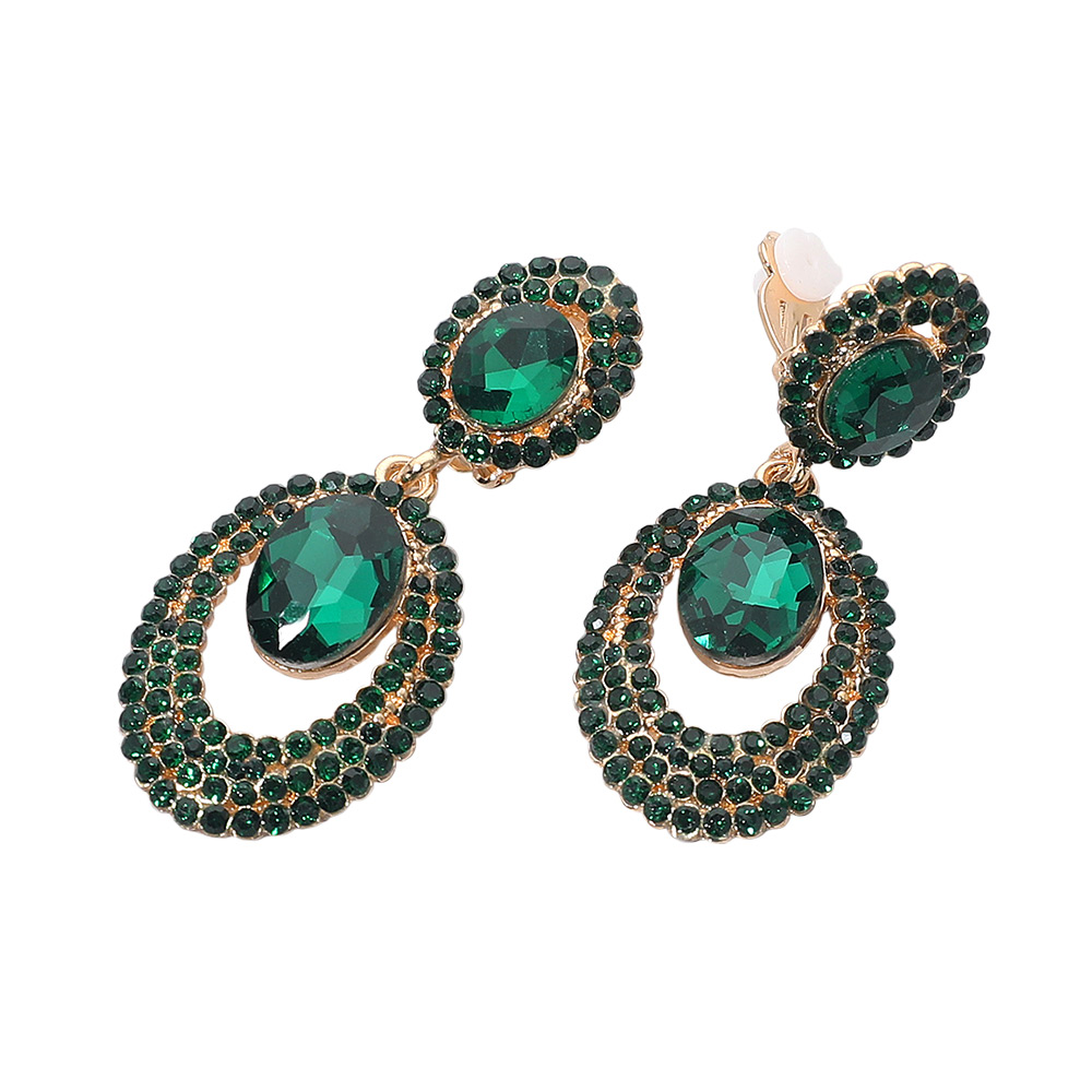 Oval Halo Drop Evening Clip On Earrings Oval Halo Drop Evening Clip On Earrings