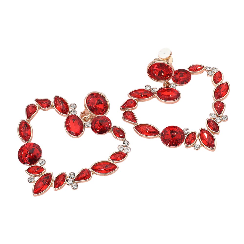 • These statement clip earrings feature a bold open-heart design accented with faceted crystals for eye-catching shine. Crafted to deliver dramatic impact without pierced ears, they offer secure clip-on comfort and elevated style. Ideal for special events, parties, or glam styling, these hoops bring instant polish and standout appeal to any jewelry collection while remaining lightweight and easy to wear.