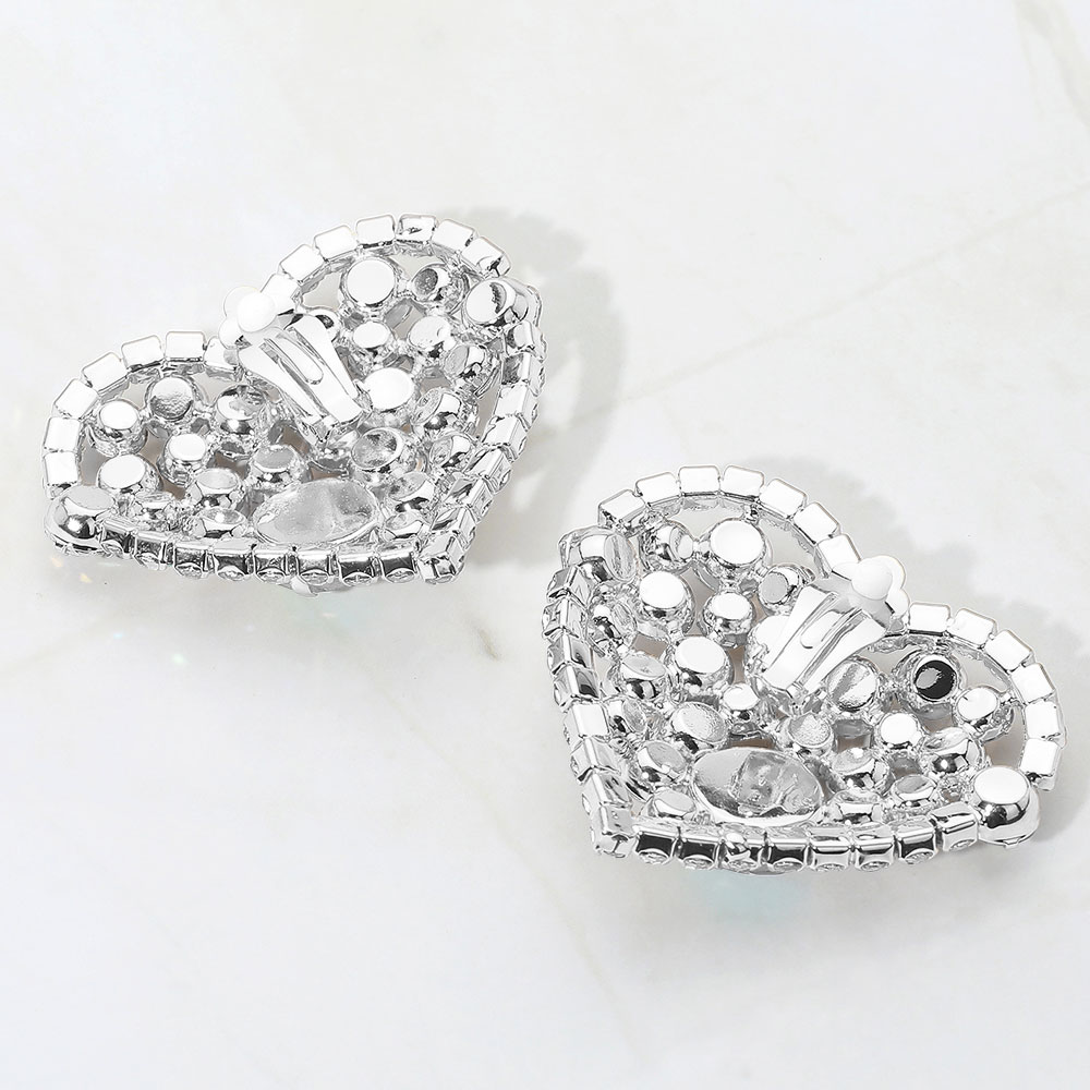 • Elegant heart-shaped clip-on earrings adorned with radiant rhinestones. A glamorous accessory that offers comfort and standout sparkle for special occasions, parties, or everyday flair.