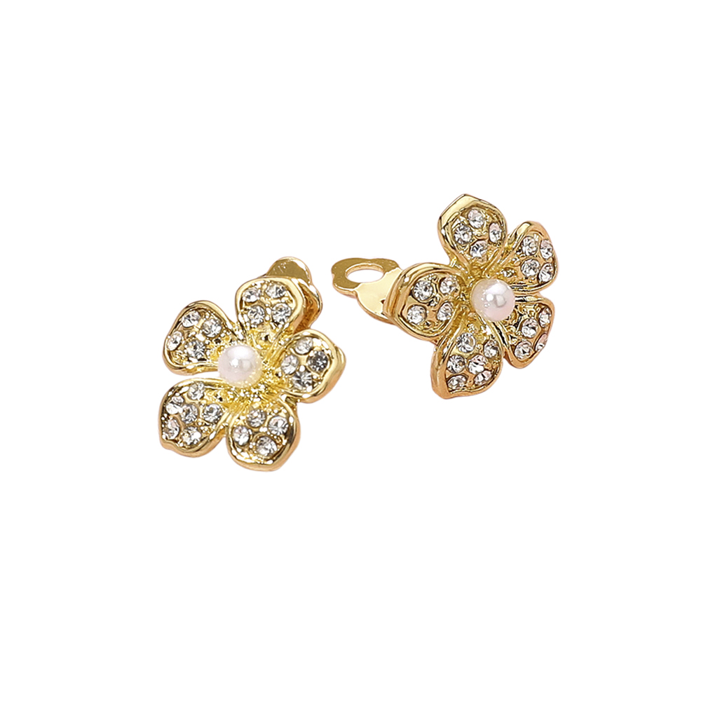 • Bring a radiant floral touch to your look with these elegant clip-on earrings featuring a five-petal crystal design and a delicate pearl at the center. Perfect for special occasions or everyday elegance, they offer sparkle, comfort, and sophistication without pierced ears.