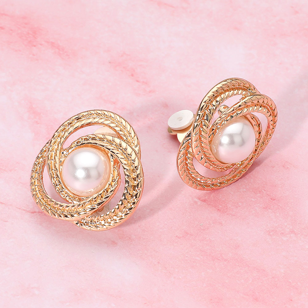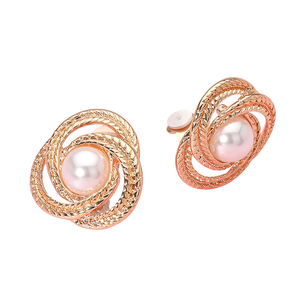 • Discover stunning clip-on earrings featuring a central faux pearl surrounded by an intricate, knot-like double band design. Perfect for adding a touch of timeless sophistication and sparkle to any outfit or special occasion. Enjoy secure, comfortable, and beautiful jewelry without piercings.