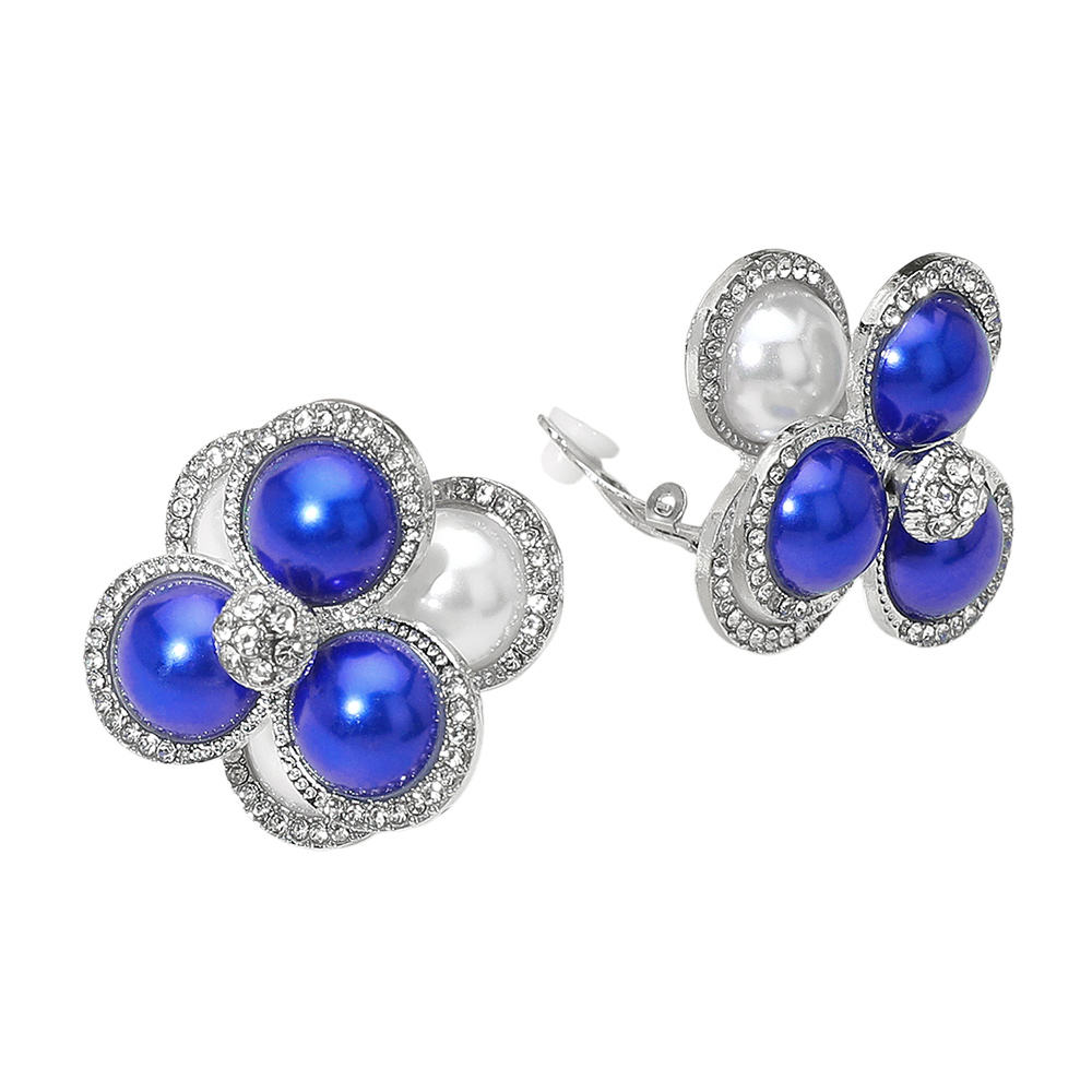 Details • Size : 1.25" X 1.25" • Clip On • Chic pearl cluster flower clip-on earrings designed with glossy petals and sparkling crystal accents. A stylish and comfortable accessory that brings an elegant touch to any outfit, perfect for both everyday wear and special occasions without the need for pierced ears. • Lead and Nickel Compliant