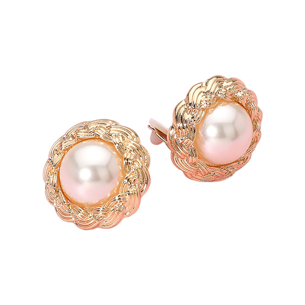 Round Pearl Center Metal Braided Frame Clip On Earrings