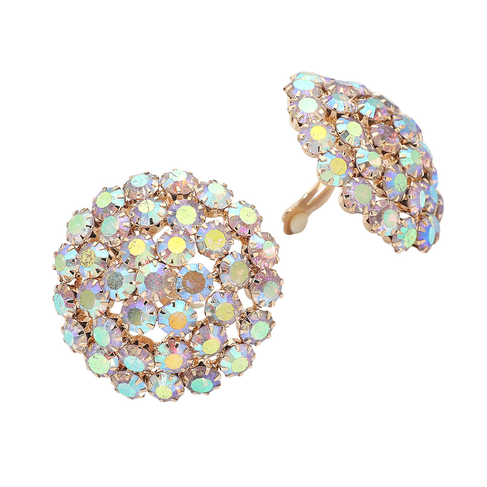 Round Rhinestone Cluster Embellished Evening Clip On Earrings