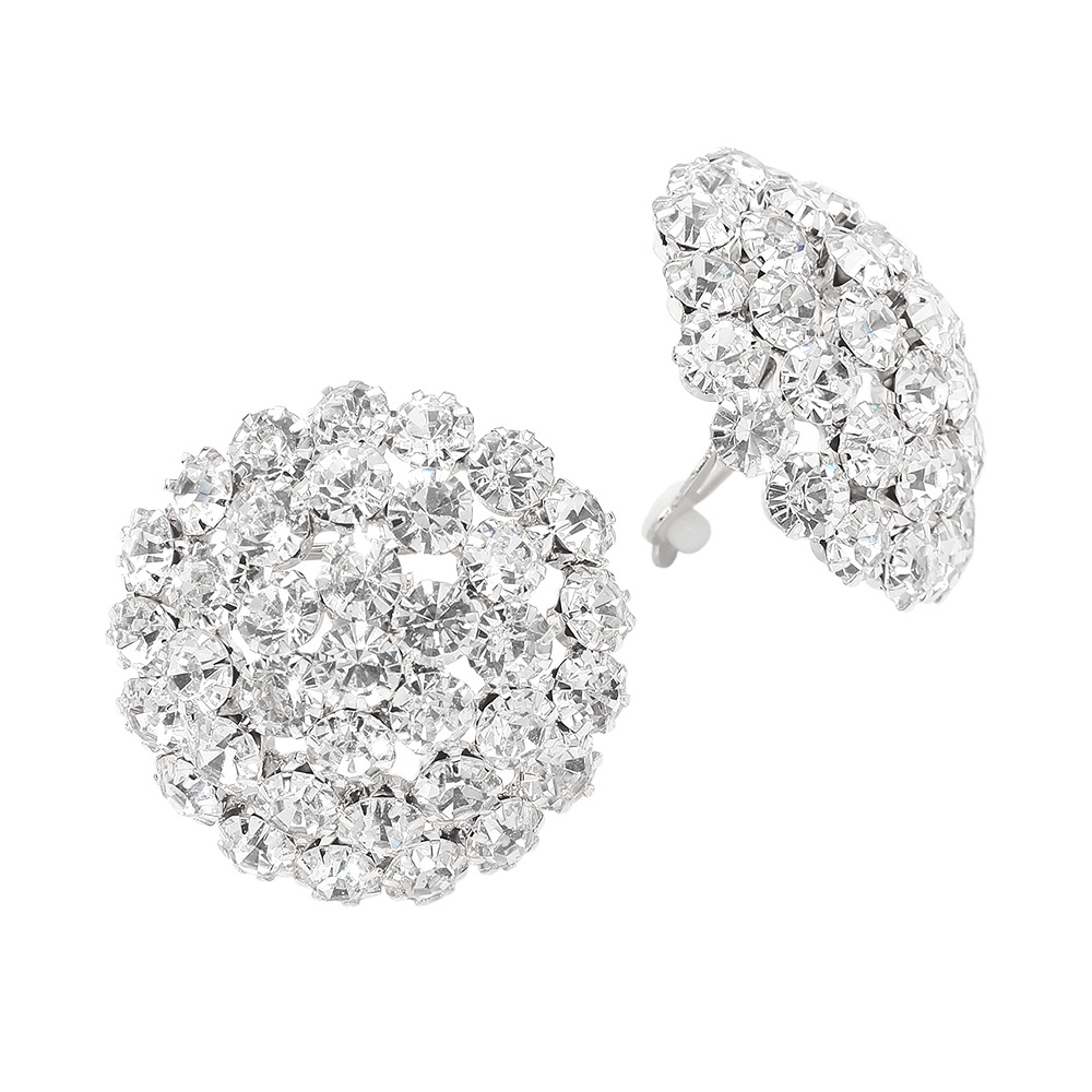 Round Rhinestone Cluster Embellished Evening Clip On Earrings