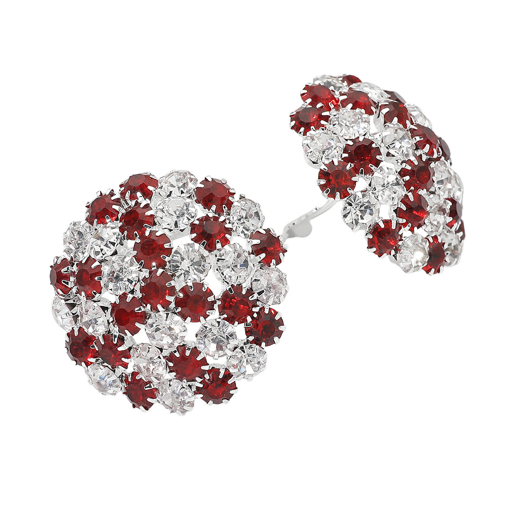 Round Rhinestone Cluster Embellished Evening Clip On Earrings