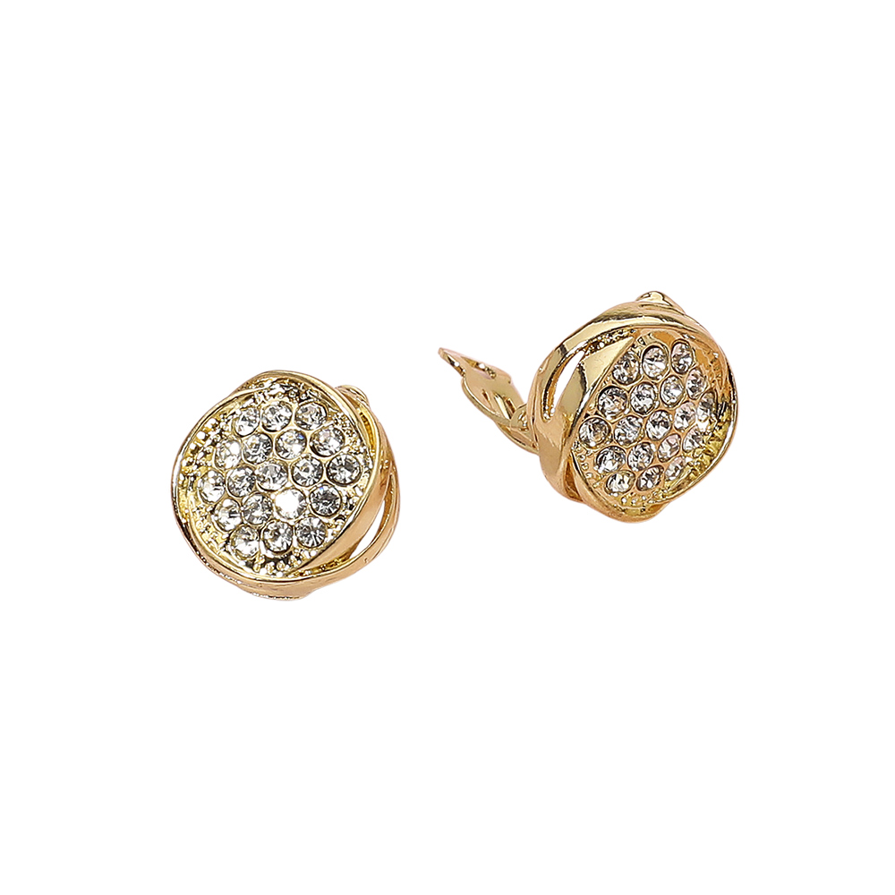 Details • Size : 0.75" X 0.75" • Clip On • Add timeless sparkle to any look with these round crystal clip-on earrings featuring a sophisticated swirl design. Perfect for both casual and formal occasions, they offer effortless elegance and comfort without the need for pierced ears. • Lead and Nickel Compliant