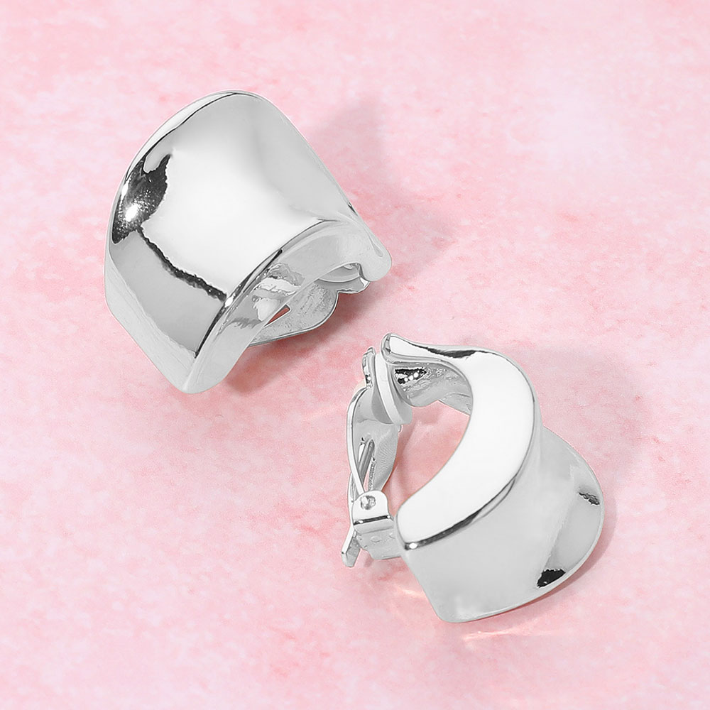 Details • Size : 0.8" X 1.2" • Clip On • These sculpted clip-on hoop earrings feature a smooth, curved silhouette that adds modern refinement to any look. Their sleek, contoured design offers effortless style and comfort, creating a versatile accessory suitable for everyday wear or elevated outfits. • Lead and Nickel Compliant