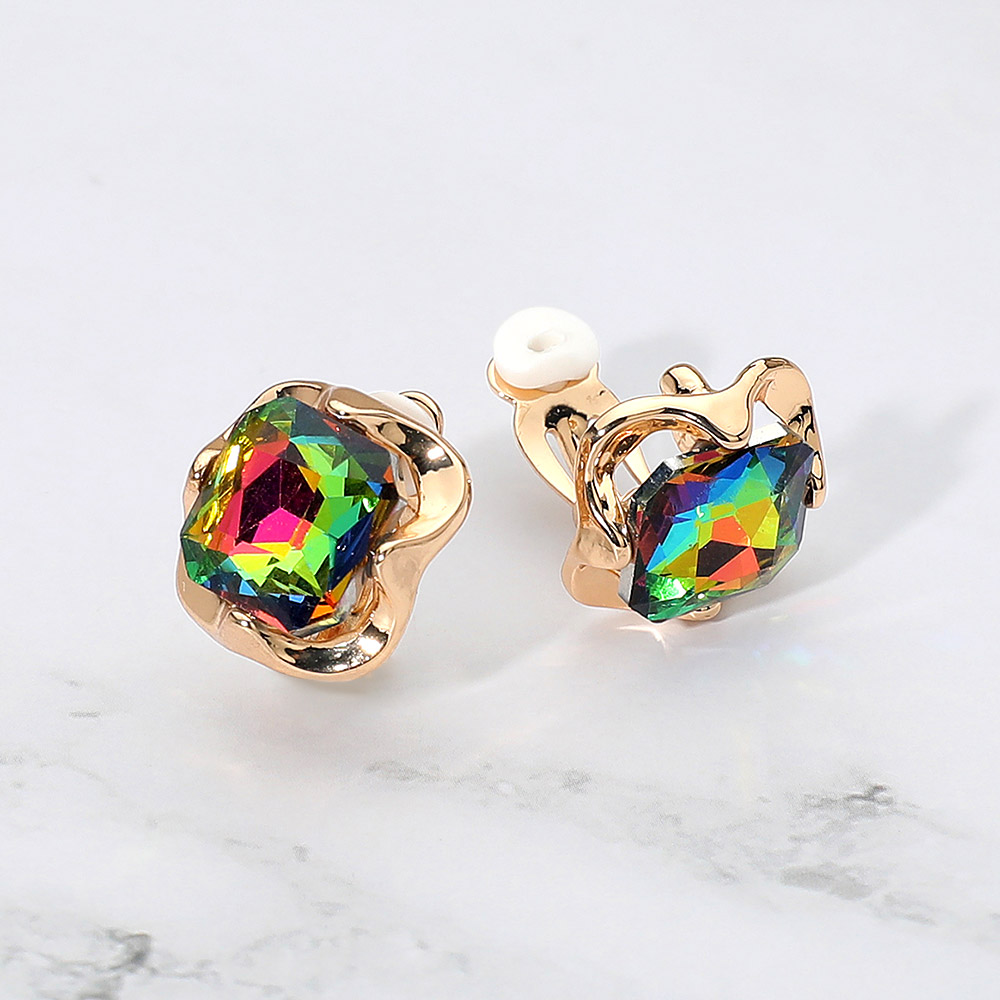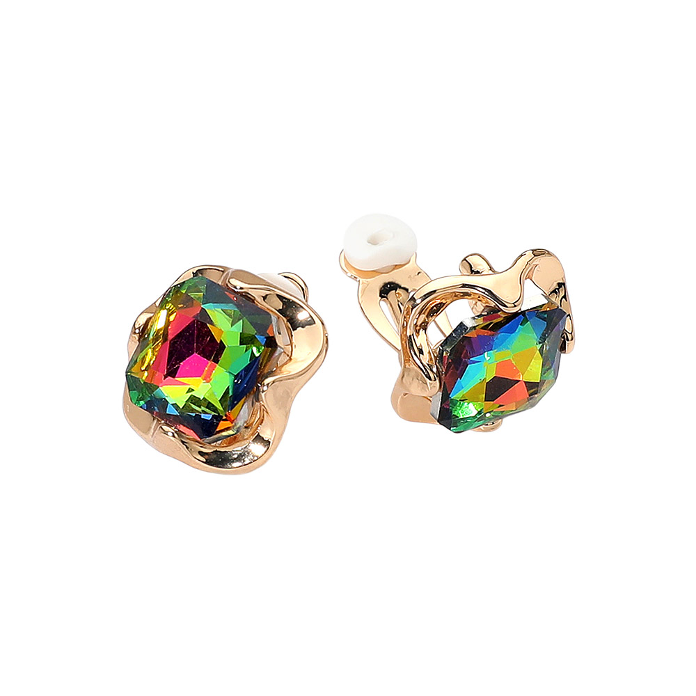 • Elegant square crystal clip-on earrings featuring a faceted gemstone design framed in a chic sculpted setting. Comfortable clip-on style adds timeless shine to both casual and dressy looks, perfect for effortless everyday elegance.