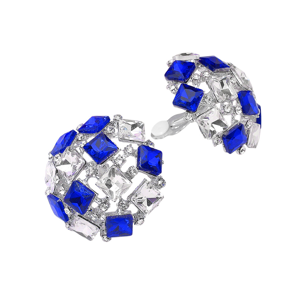 Square Stone Cluster Embellished Dome Evening Clip On Earrings