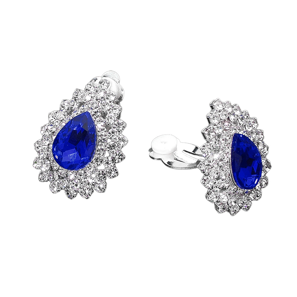 Details • Size : 0.8" X 1.2" • Clip On • Glamorous teardrop crystal cluster clip-on earrings designed with a sparkling layered halo for a radiant, eye-catching finish. Their elegant, non-pierced design offers comfortable wear for formal events, parties, bridal looks, or any occasion that calls for a touch of refined brilliance. • Lead and Nickel Compliant