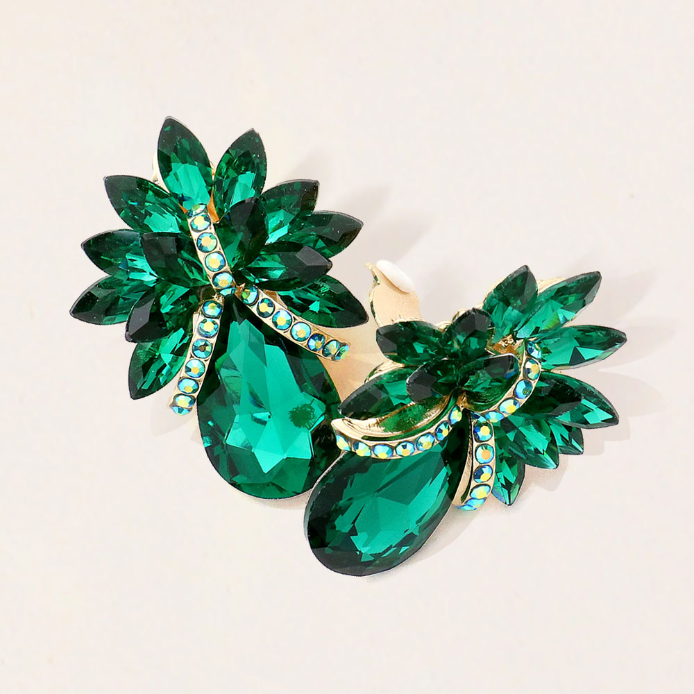 • Stunning clip-on earrings designed with a leaf cluster arrangement and dazzling crystal accents. These bold statement earrings add a glamorous touch to any outfit, perfect for parties, weddings, and evening events where timeless sophistication meets modern sparkle.