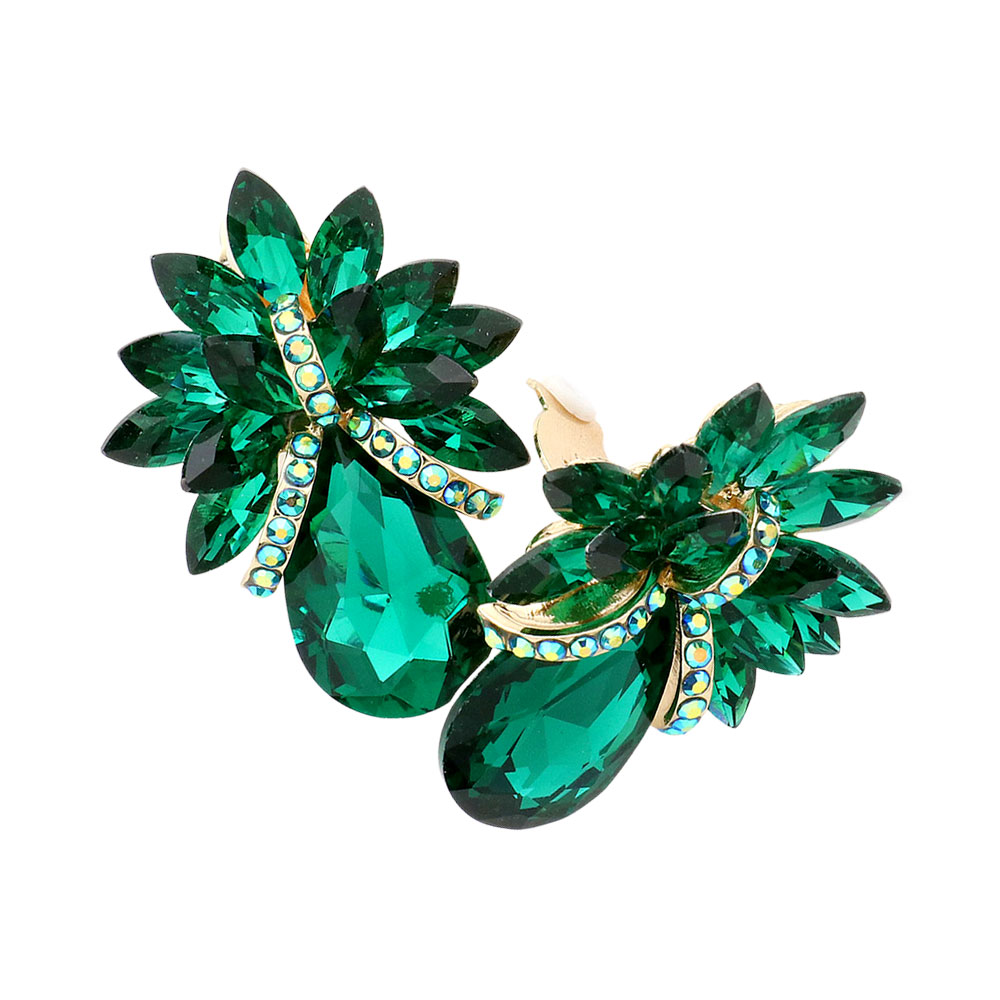 Teardrop Stone Accented Clip on Evening Earrings Teardrop Stone Accented Clip on Evening Earrings