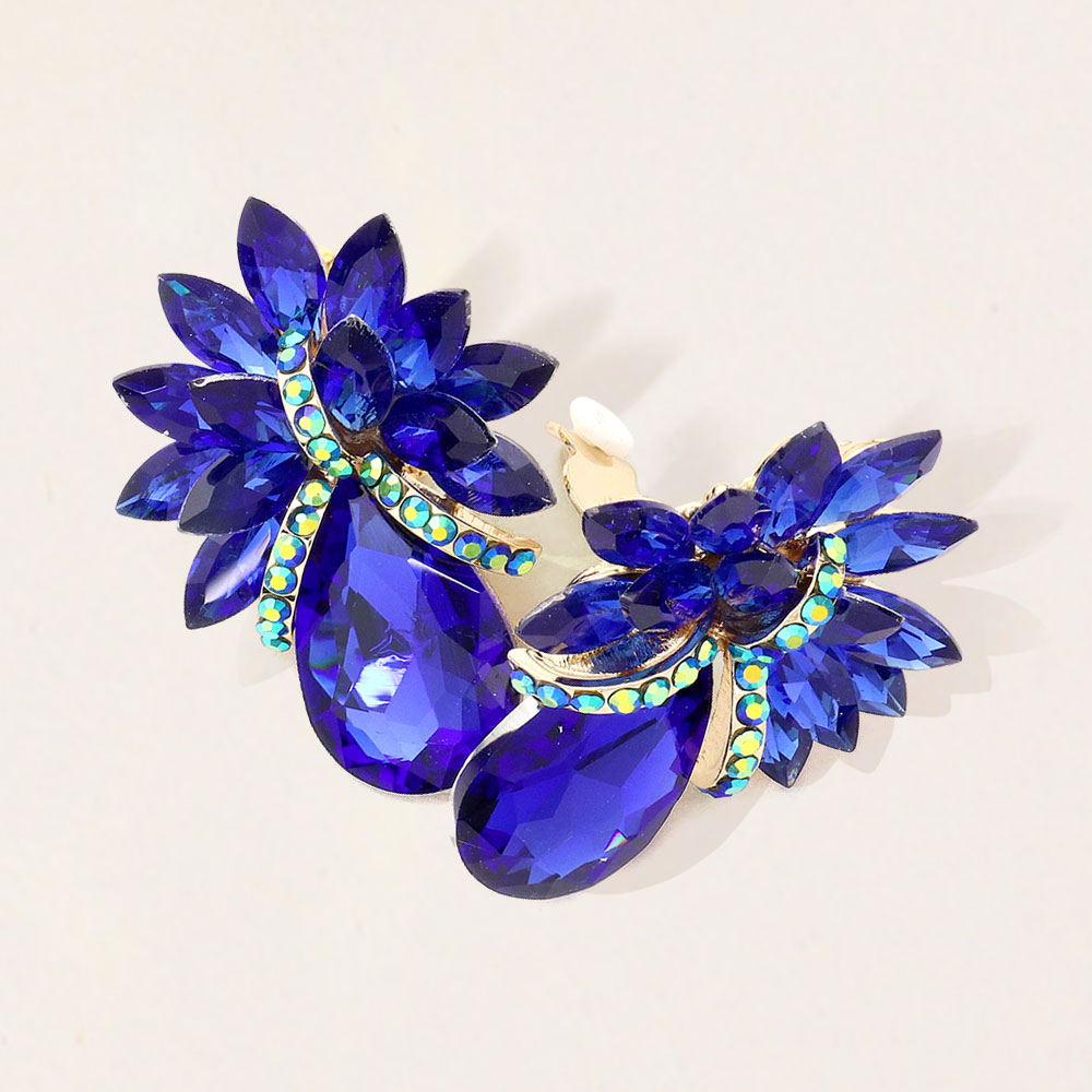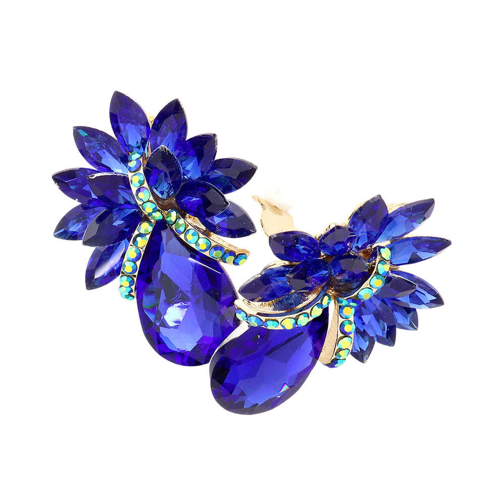 Teardrop Stone Accented Clip on Evening Earrings Teardrop Stone Accented Clip on Evening Earrings