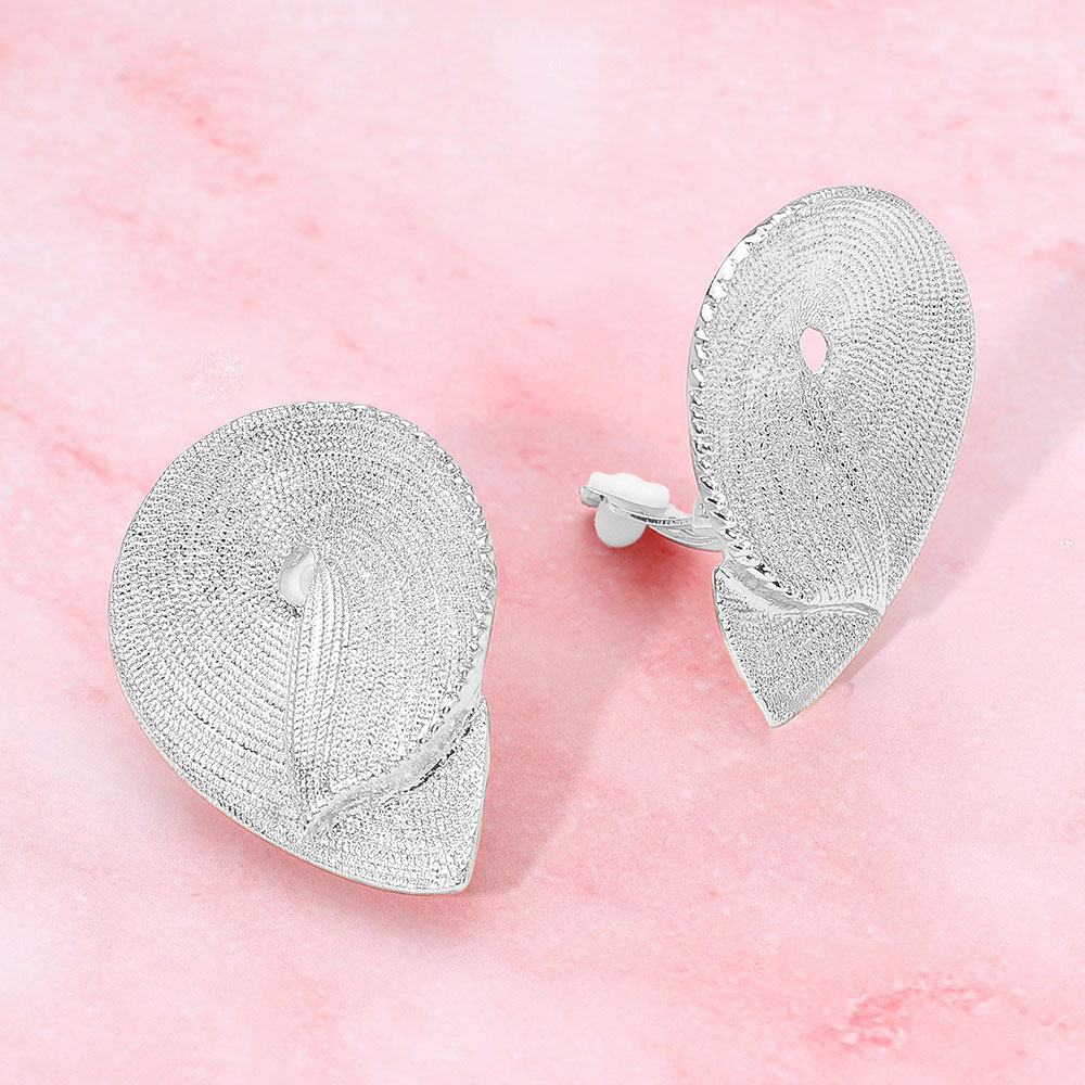 Details • Size : 1.25" X 1.7" • Clip On • Elevate your style with these sculpted swirl clip-on earrings, designed with a textured finish and elegant curved silhouette. Their unique, flowing form captures modern sophistication and timeless grace, offering a statement look that’s both lightweight and comfortable for all-day wear. • Lead and Nickel Compliant