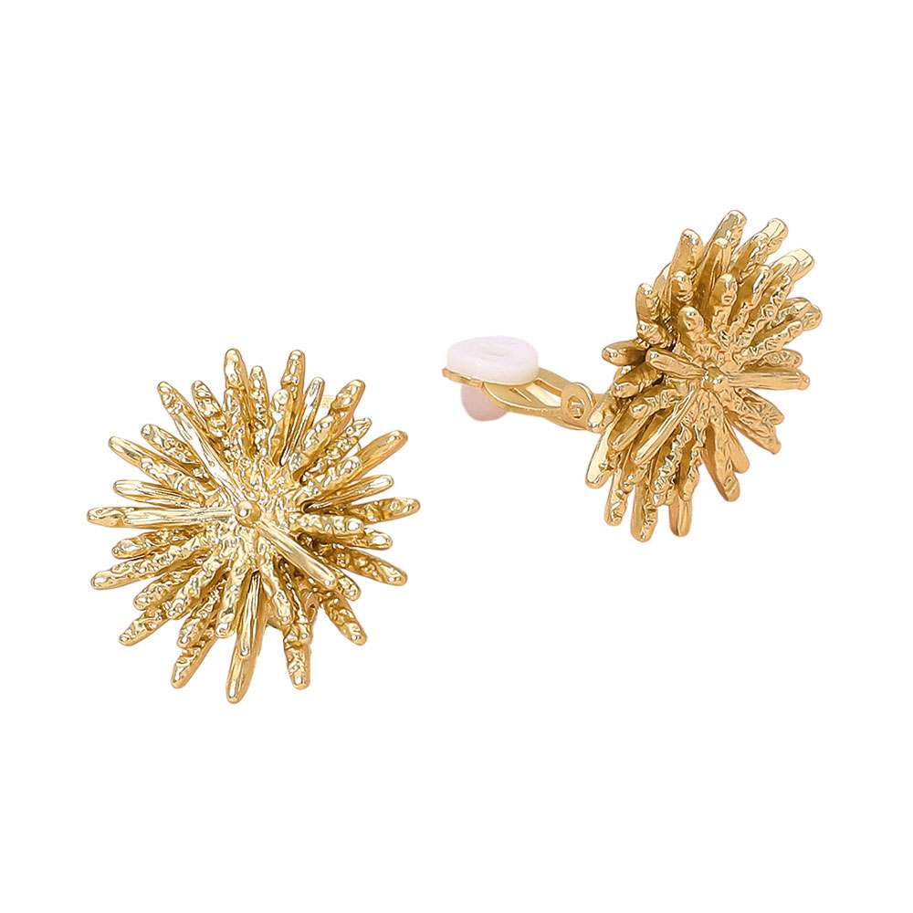 Details • Size : 0.9" X 0.9" • Clip On • Add dazzling brilliance to your style with these radiant starburst clip-on earrings. Designed with intricate detailing for a bold yet elegant look, they capture light beautifully from every angle. Perfect for special occasions or adding sparkle to everyday wear—no piercings required. • Lead and Nickel Compliant