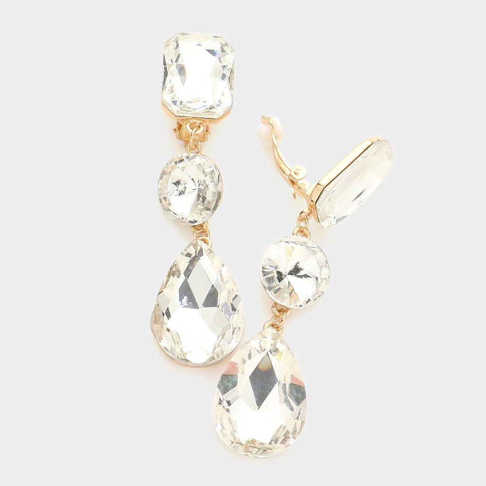 Oval Marquise Stone Cluster Accented Rhinestone Rhombus Dangle Evening Earrings