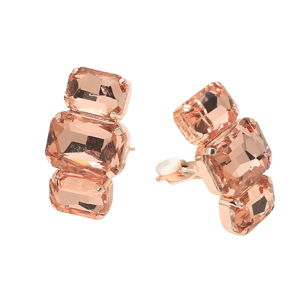 Triple Rectangular Faceted Stone Evening Clip On Earrings