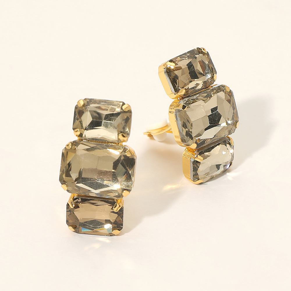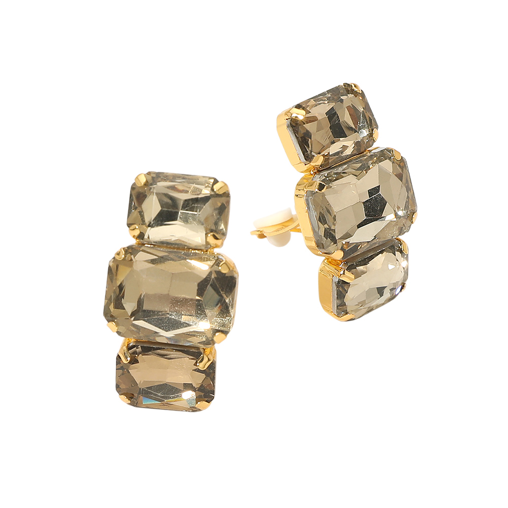 Details • Size : 0.75" X 1.25" • Clip On • Statement clip earrings designed with stacked geometric faceted stones that reflect light beautifully for a bold, eye-catching look. Perfect for dressing up everyday outfits or adding dramatic shine to evening wear, these clip earrings offer comfortable wear with a glamorous, modern silhouette that appeals to customers seeking standout accessories with elegant sparkle. • Lead and Nickel Compliant