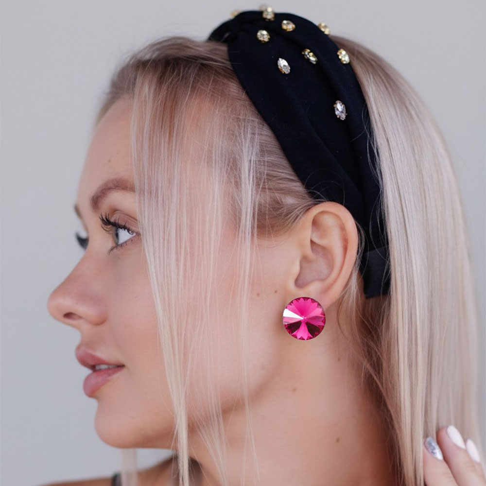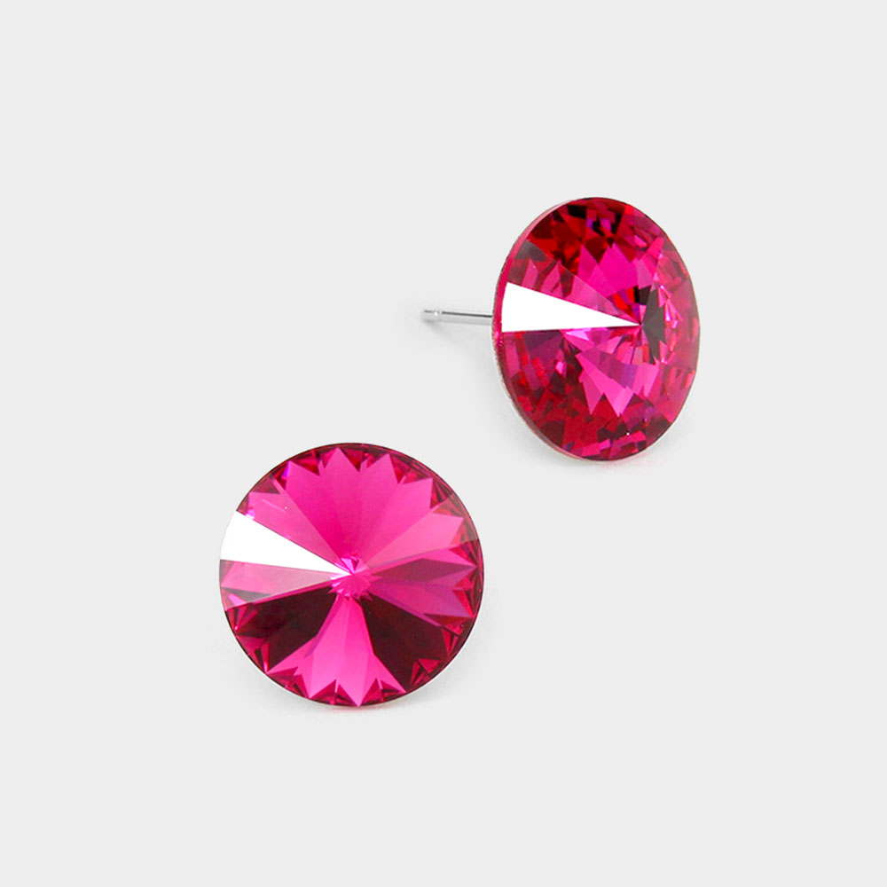 Details • Size : 15 mm • Post Back • Eye-catching round stud earrings with a faceted, high-shine finish that delivers bold sparkle in a clean, minimal silhouette. Perfect for everyday wear or dressy occasions, they offer lightweight comfort and versatile style that pairs easily with any outfit.