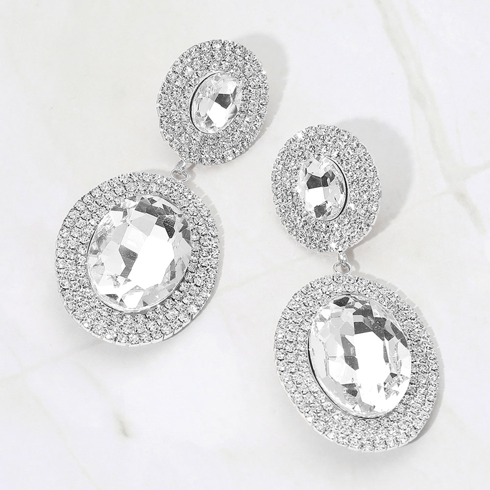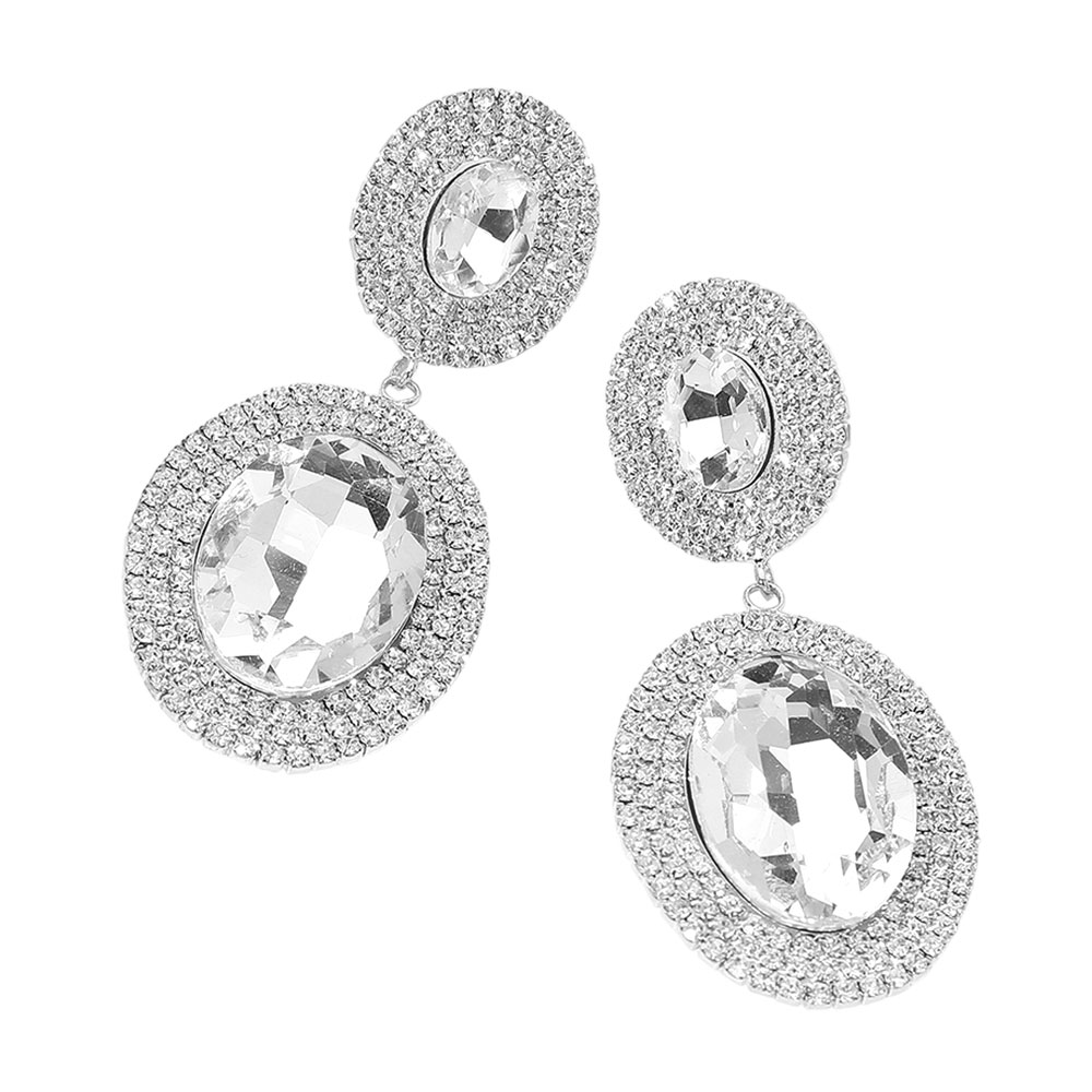 • Glamorous double oval drop earrings featuring faceted stones framed by shimmering pave halos. Perfect for weddings, parties, evening events or adding show-stopping sparkle to any outfit. A statement accessory with radiant, eye-catching elegance.