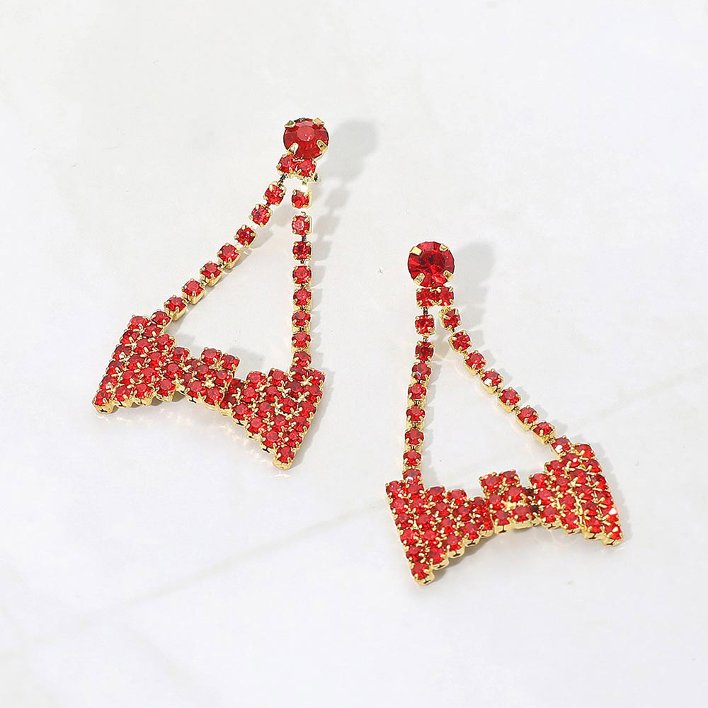 • Statement bow drop earrings designed with cascading sparkle and eye-catching movement. Perfect for party looks, holiday styling, performances, and boutique collections, these earrings add playful elegance and dramatic shine to any outfit while offering lightweight comfort and standout visual appeal for special occasions and trend-forward displays.