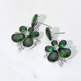 Crystal Rhinestone Pave Leaf Teardrop Evening Earrings