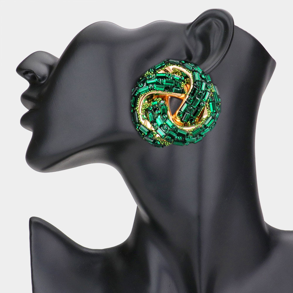 Rhinestone Paved Abstract Half Moon Earrings