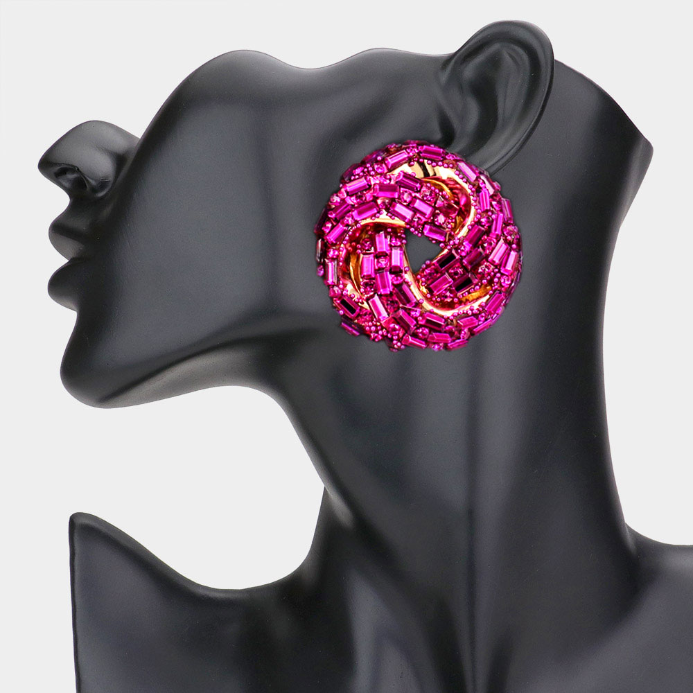 Cylinder Stone Embellished Round Post Earrings