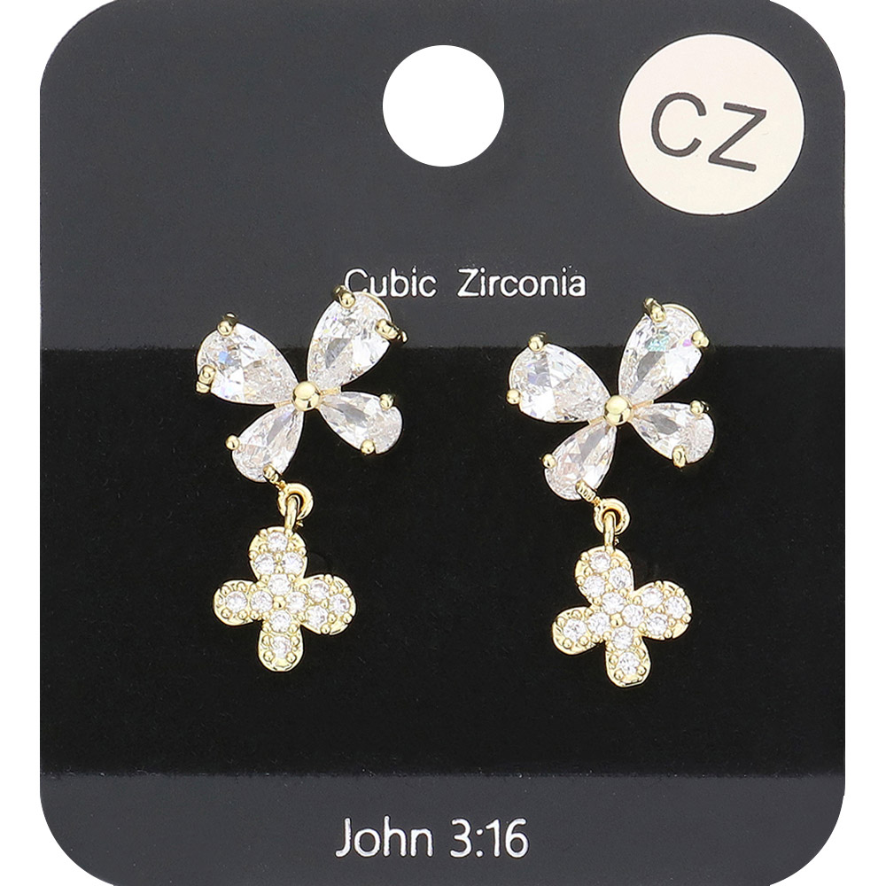 CZ Stone Pave Butterfly Dangle Evening Earrings