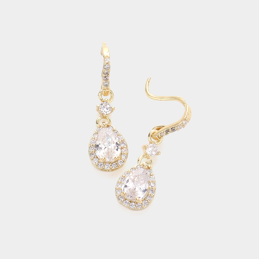 CZ Teardrop Dangle Evening Earrings