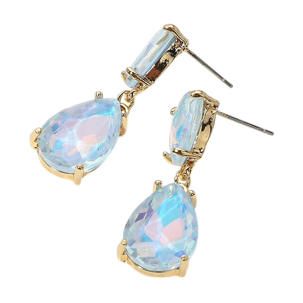 • Elegant double teardrop dangle earrings with shimmering faceted stones. A timeless design that catches the light beautifully, perfect for adding a touch of glam to formal or evening looks.