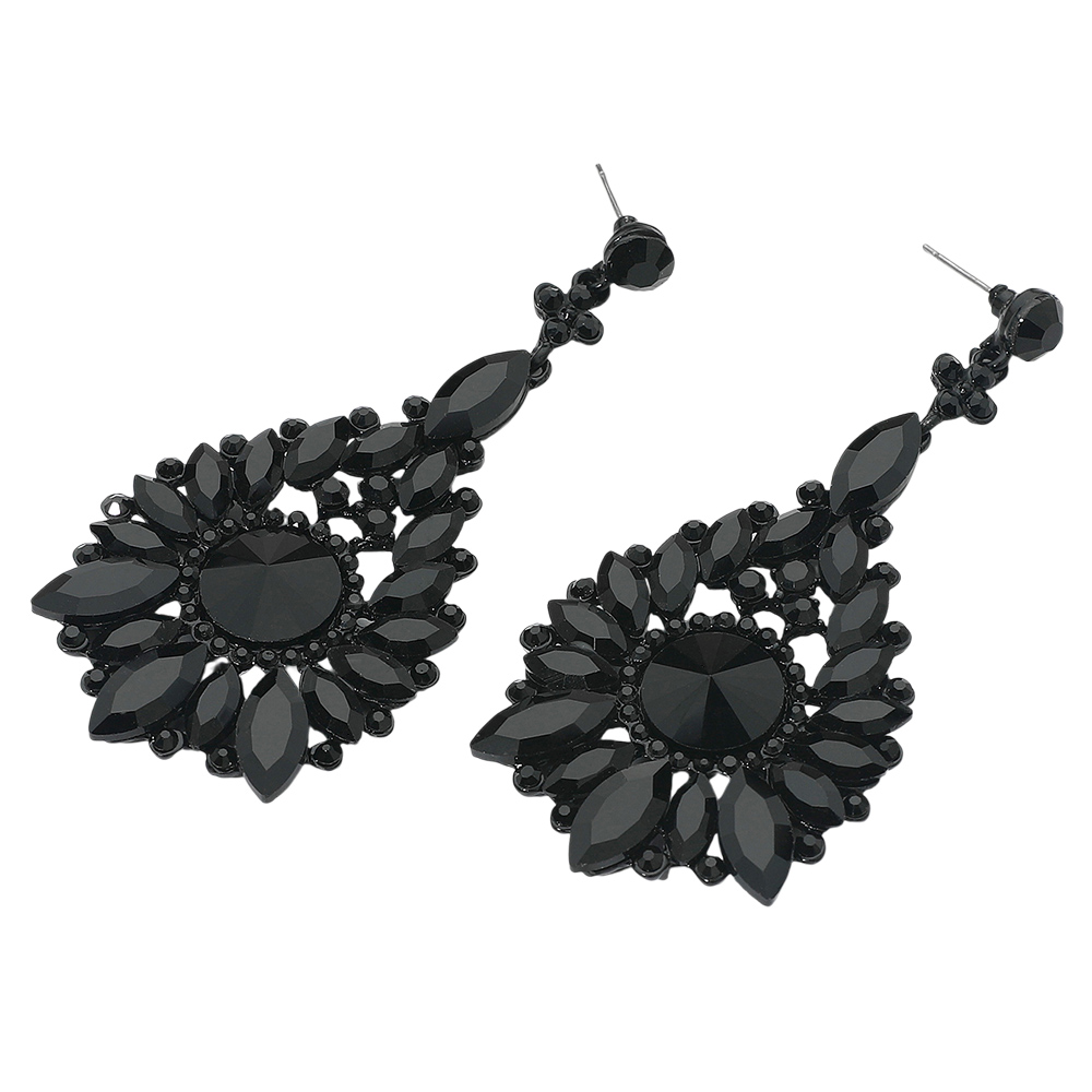 • Make an unforgettable impression with these statement teardrop crystal earrings. Designed with intricate faceted stones in a radiant arrangement, they capture light beautifully for a luxurious look—perfect for evening events, weddings, and glamorous nights out.