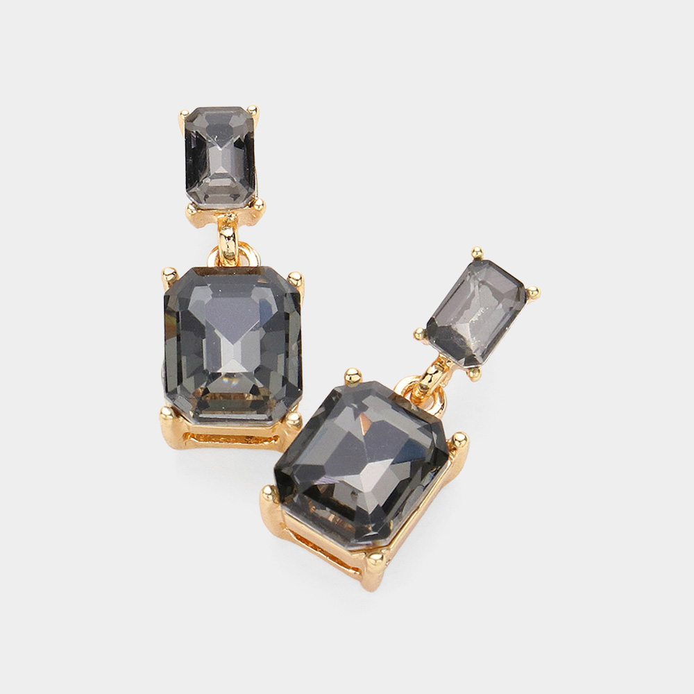 Emerald Cut Stone Dangle Evening Earrings