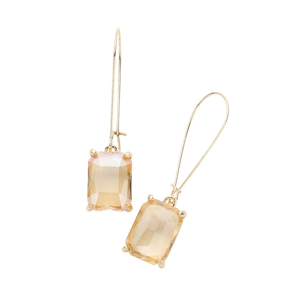 • These minimalist crystal drop earrings feature sleek rectangular stones suspended from delicate loops for a modern, refined look. Perfect for everyday wear or formal occasions, they add just the right touch of sparkle and sophistication to elevate any outfit effortlessly.
