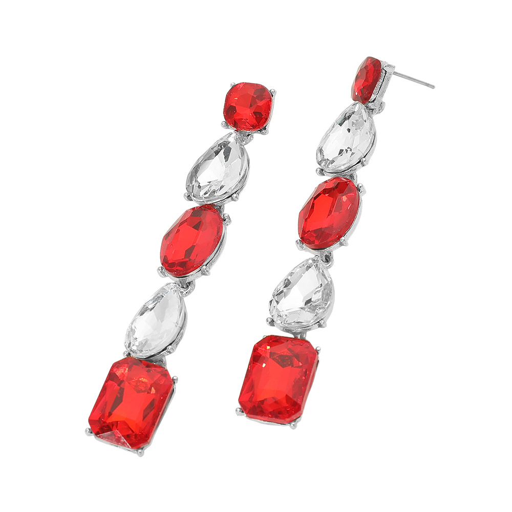 Faceted Teardrop Oval Rectangle Stone Cluster Link Dropdown Evening Earrings