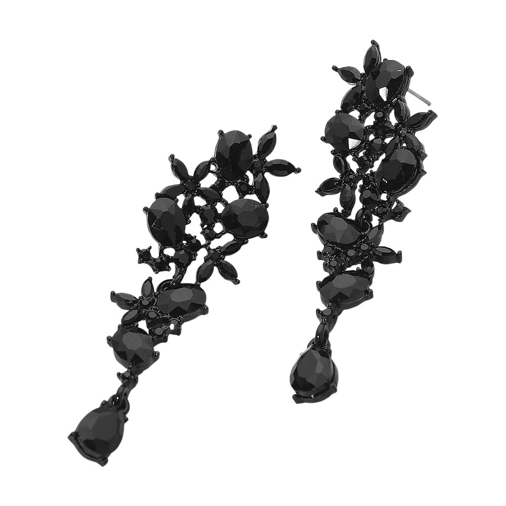 Details • Size : 0.8" X 2.7" • Post Back • These floral gem cluster drop earrings feature a graceful arrangement of marquise and oval-cut stones, creating a cascading botanical-inspired design. Perfect for evening wear or special occasions, they bring elegance and sparkle to any outfit with their intricate detailing and refined charm. • Lead and Nickel Compliant