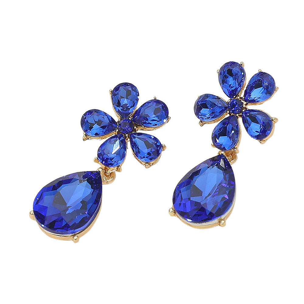 Flower Teardrop Stone Cluster Dangle Evening Earrings Flower Teardrop Stone Cluster Dangle Evening Earrings