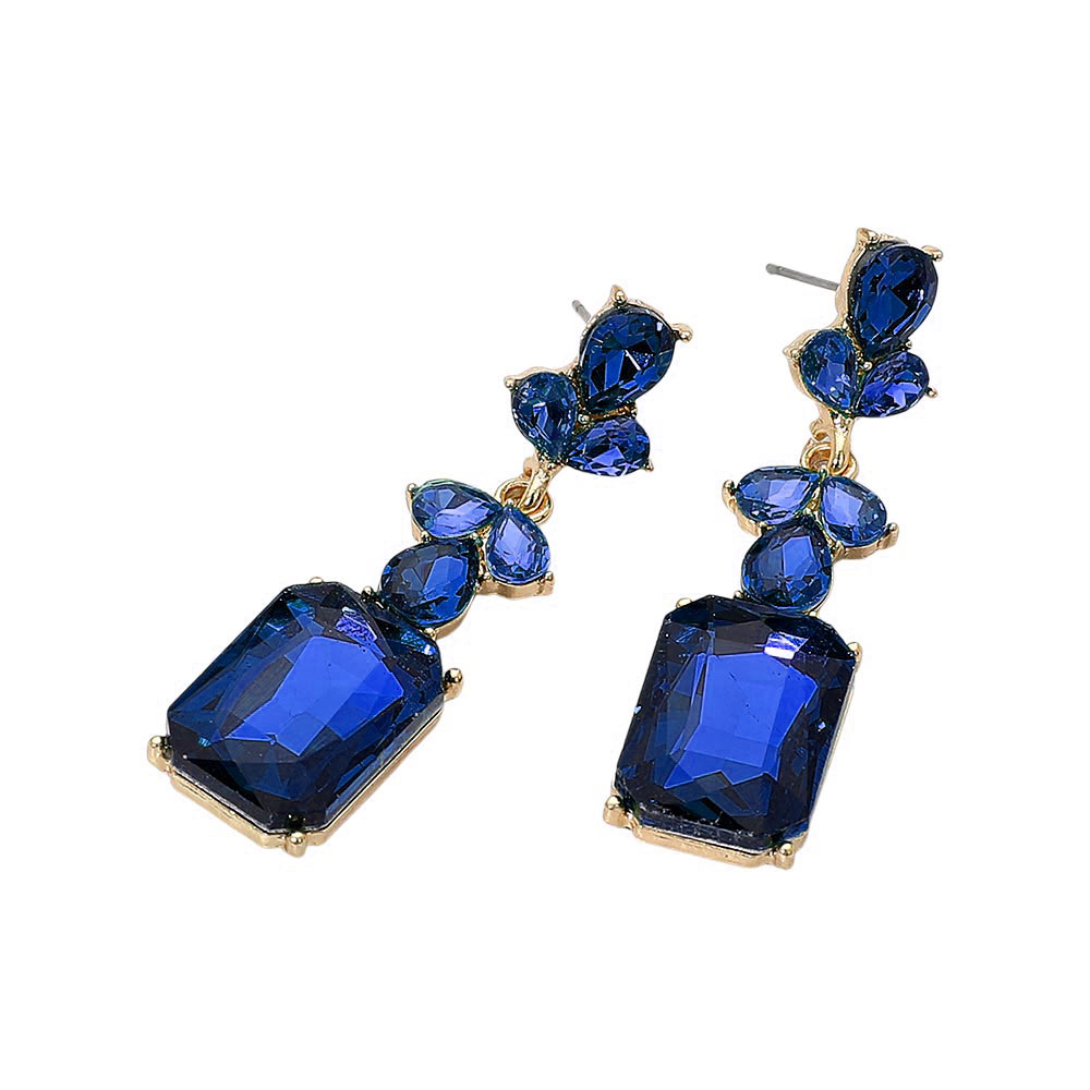 Triple Flower Stone Cluster Link Teardrop Pointed Evening Earrings