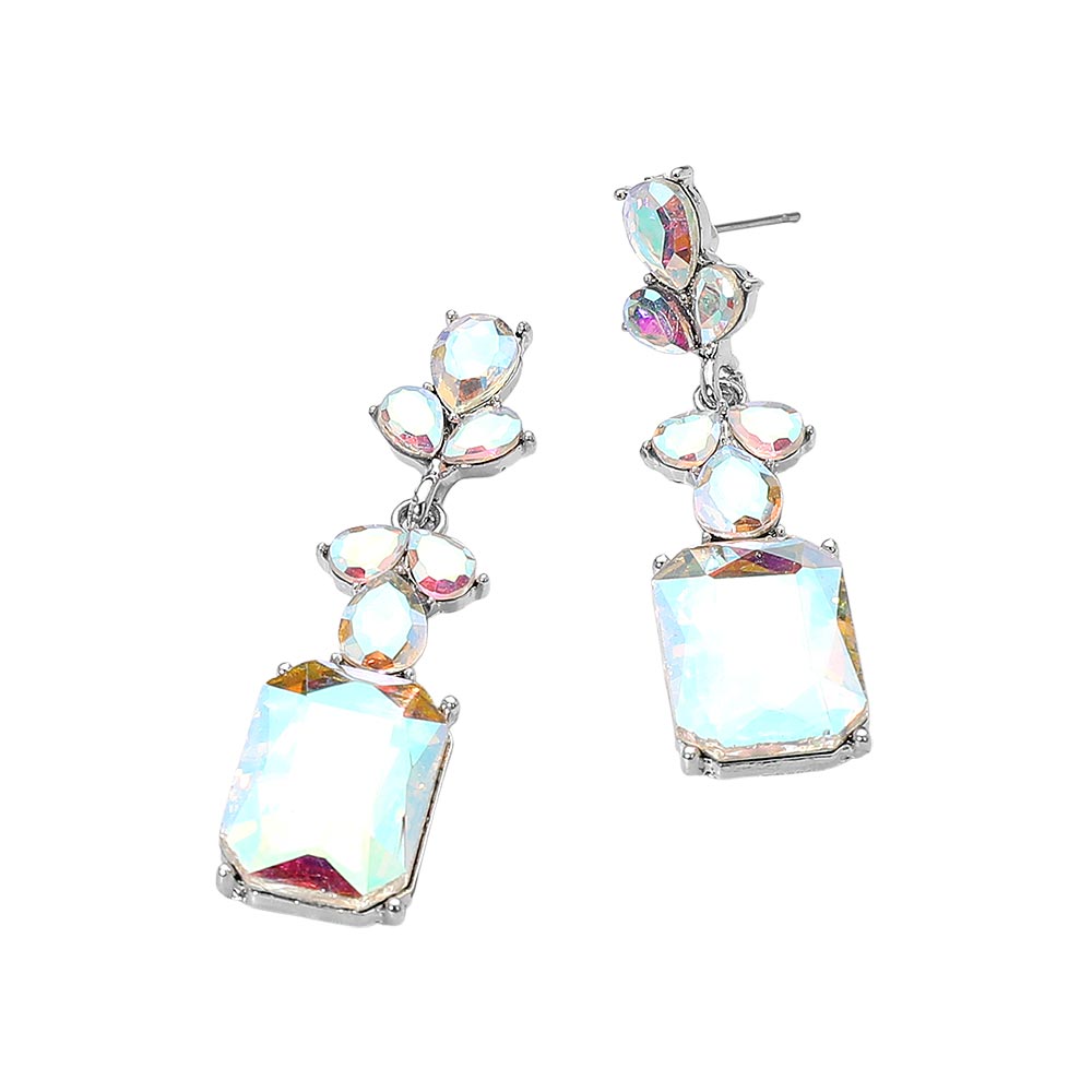 Emerald Cut Stone Dangle Evening Earrings
