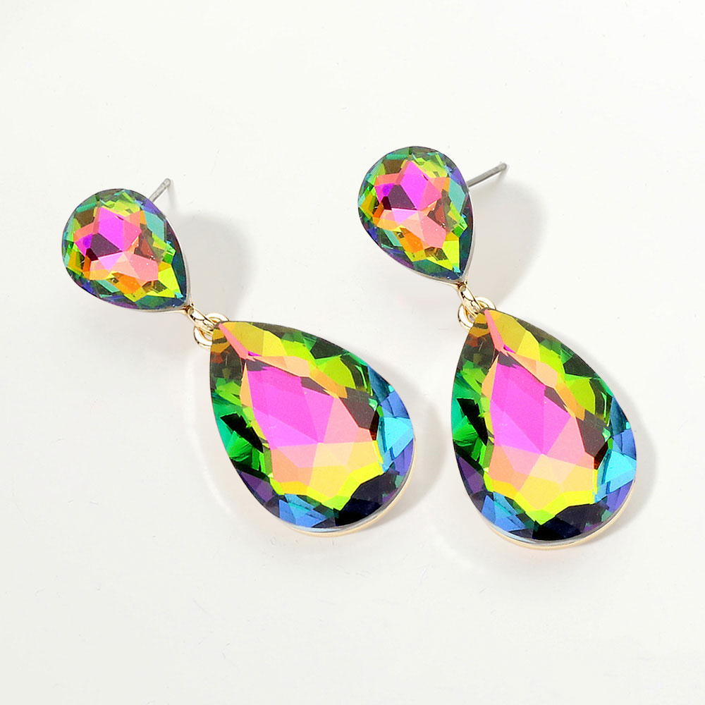 • Glamorous faceted teardrop dangle earrings featuring a radiant crystal-cut design that catches the light beautifully. Lightweight and sophisticated, these statement earrings elevate evening outfits, weddings, or special occasions with timeless elegance and refined sparkle.