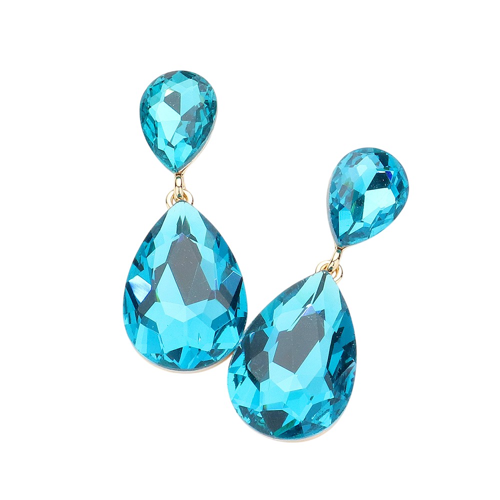 • Glamorous faceted teardrop dangle earrings featuring a radiant crystal-cut design that catches the light beautifully. Lightweight and sophisticated, these statement earrings elevate evening outfits, weddings, or special occasions with timeless elegance and refined sparkle.