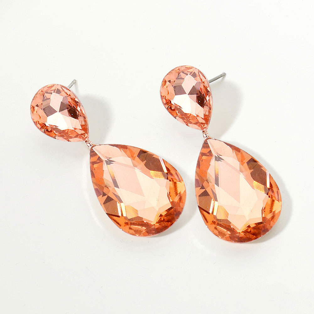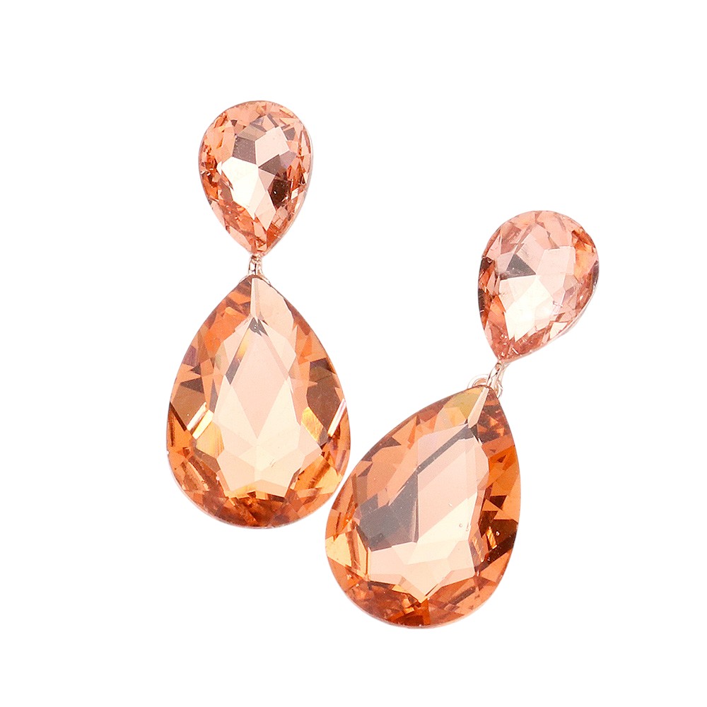 • Glamorous faceted teardrop dangle earrings featuring a radiant crystal-cut design that catches the light beautifully. Lightweight and sophisticated, these statement earrings elevate evening outfits, weddings, or special occasions with timeless elegance and refined sparkle.