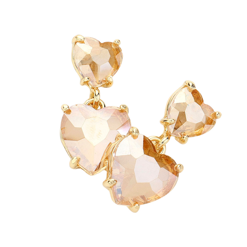 Details • Size : 0.6" X 1.1" • Post Back • Elegant double heart drop earrings featuring dazzling faceted stones that shine beautifully. A romantic and chic accessory perfect for date nights, special occasions, or gifting someone you love. • Lead and Nickel Compliant