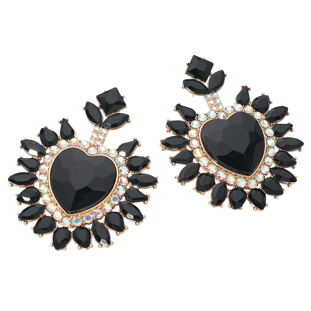 Heart Stone Cluster Embellished Drop Statement Earrings Heart Stone Cluster Embellished Drop Statement Earrings Heart Stone Cluster Embellished Drop Statement Earrings