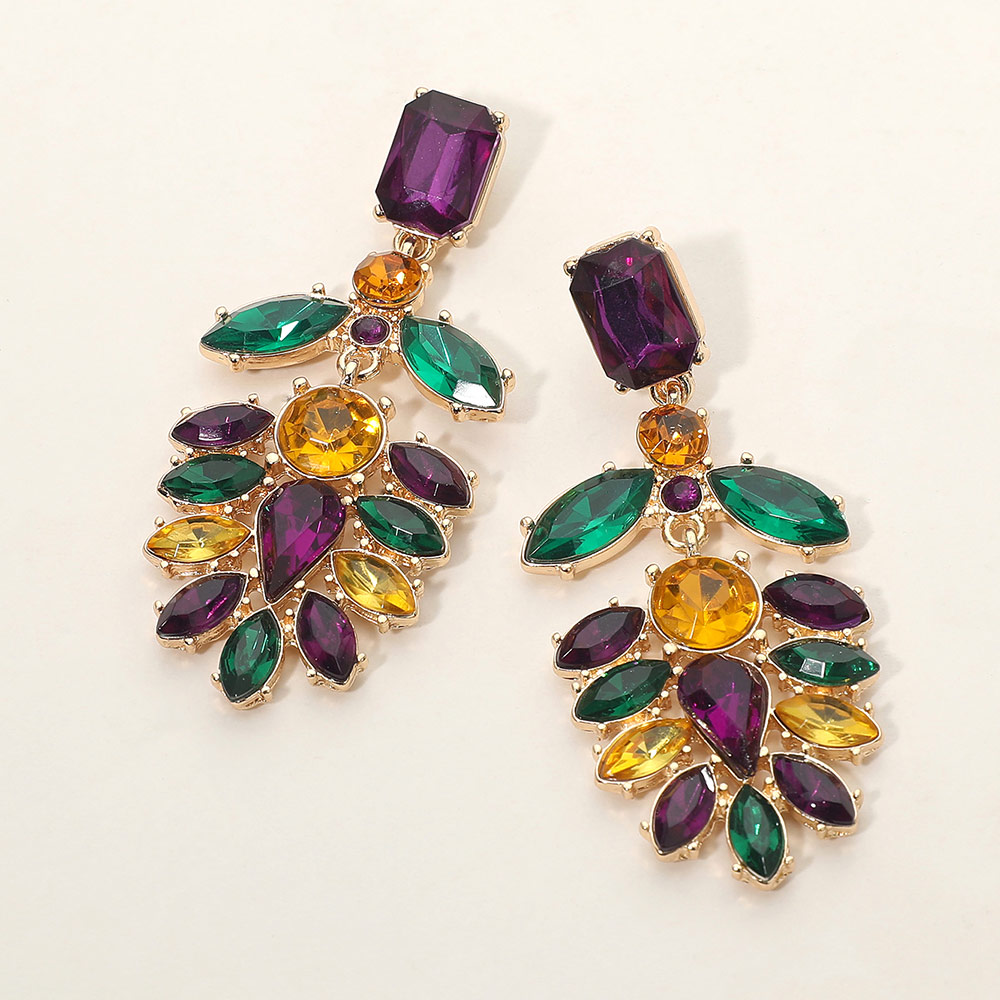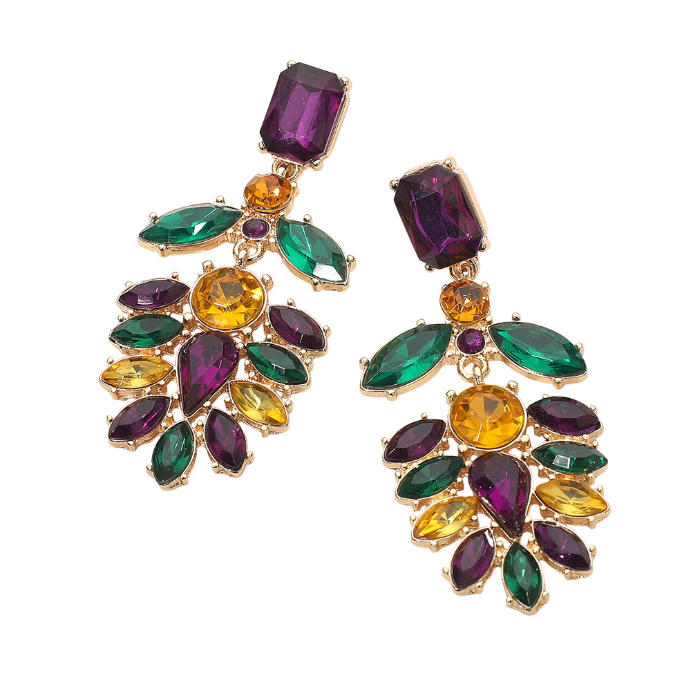 Details • Size : 1.25" X 2.75" • Post Back • Statement drop earrings featuring a dramatic floral-inspired silhouette with faceted stone details for bold, eye-catching style. Designed to add elegance and impact, these earrings elevate party outfits, special occasions, and evening looks while offering standout appeal for boutique collections. • Lead and Nickel Compliant